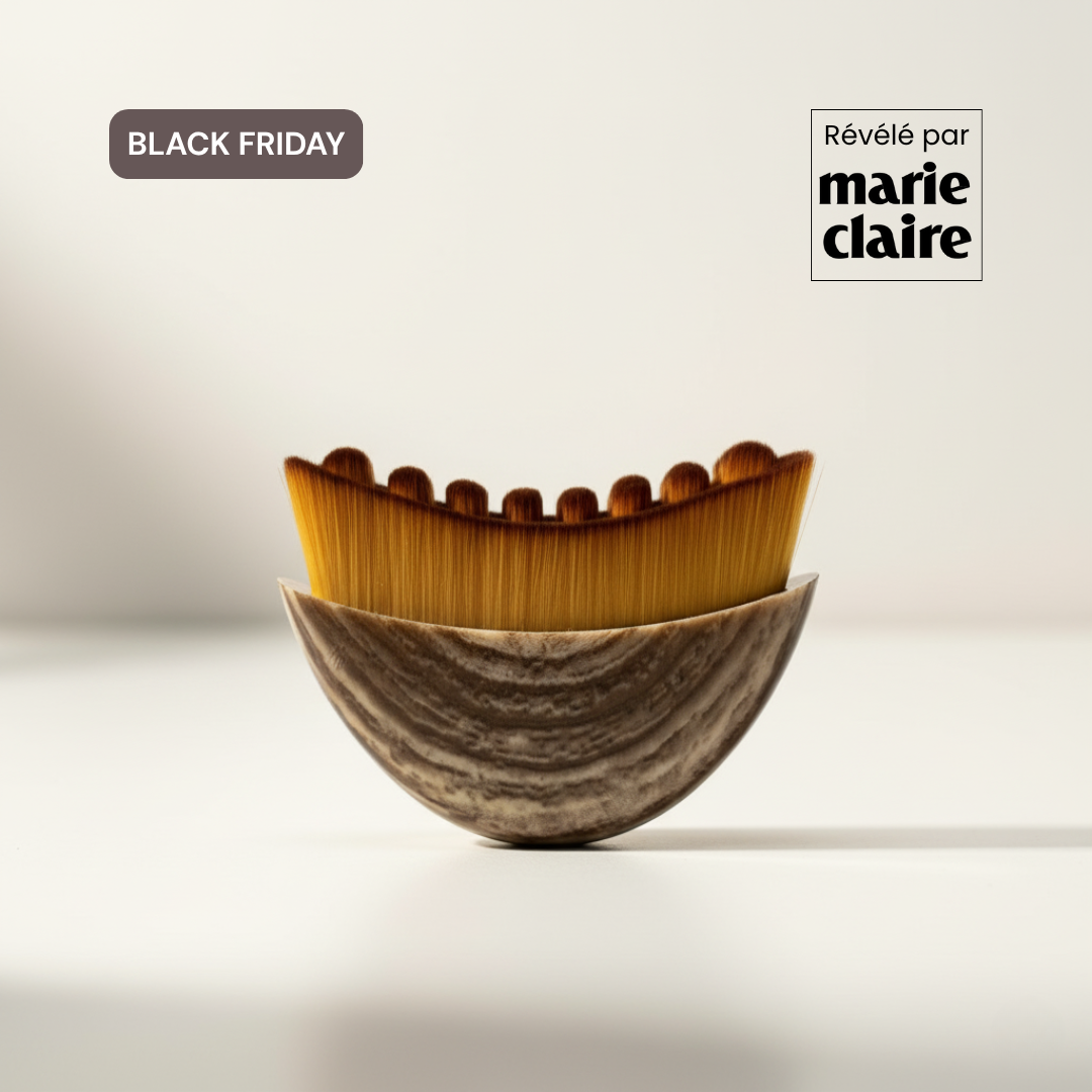 Grâce à ses poils à mémoire de forme, NOKAH reproduit les gestes du drainage lymphatique en 3 minutes par jour pour dégonfler, lisser et redessiner.